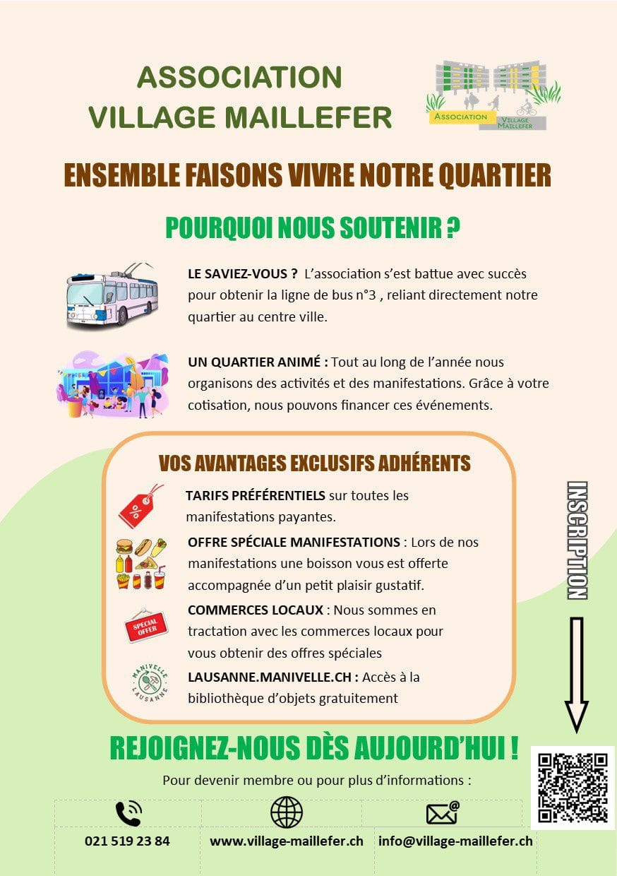 Rejoignez nous en devenant membre de l’Association Village Maillefer. Inscrivez-vous dès maintenant pour profiter de nombreux avantages et rester informé des dernières nouvelles et événements, et de profiter des avantages des membres.